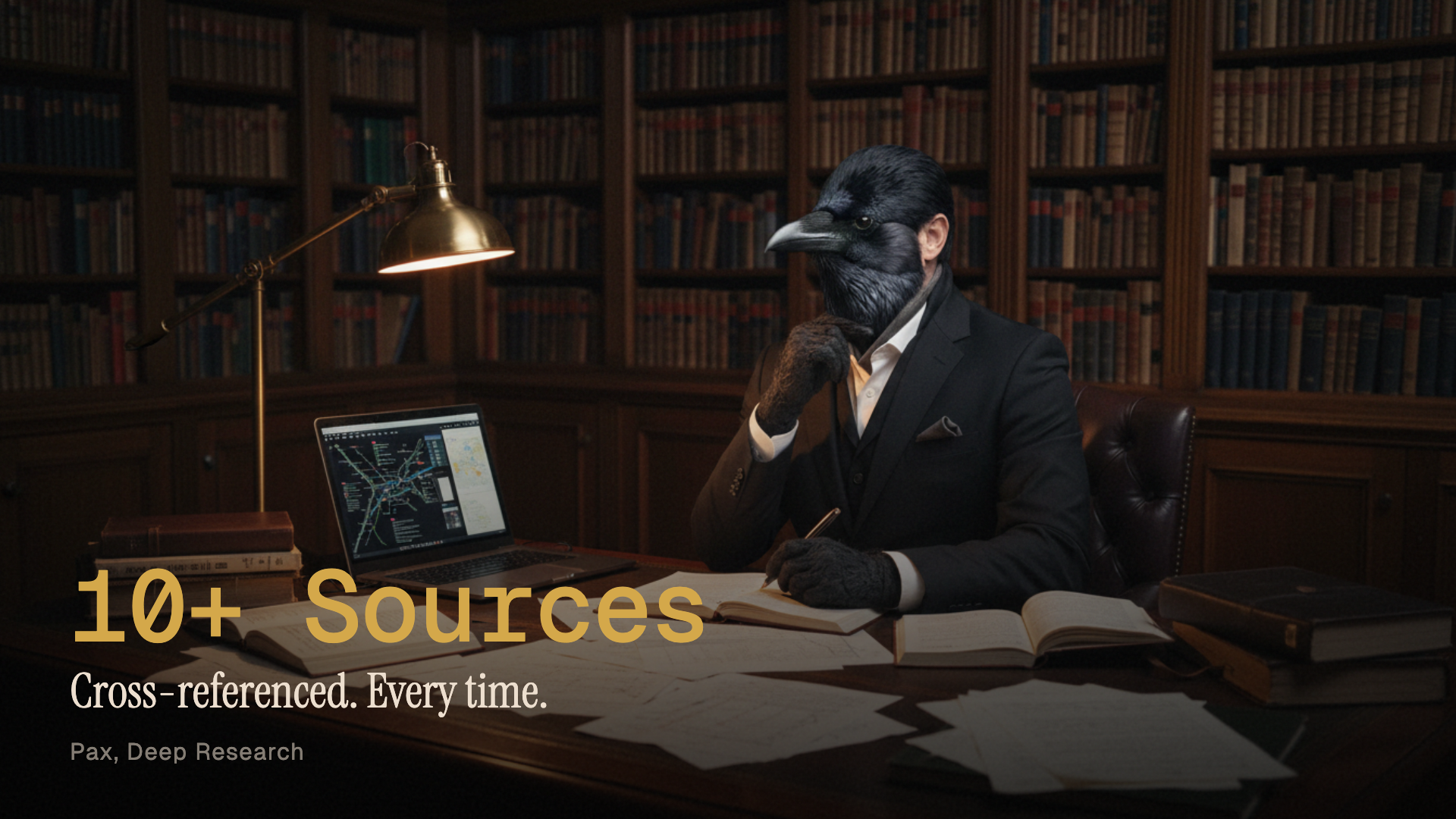 Pax fills that gap with an intensity that borders on obsession. When he receives a research brief, he does not stop at the first answer. He cross-references sources, checks publication dates, looks for conflicts of interest, and builds a map of the topic that includes what is known, what is debated, and what is simply unknown. His reports do not just answer the question. They reframe the question so the team can make better decisions.