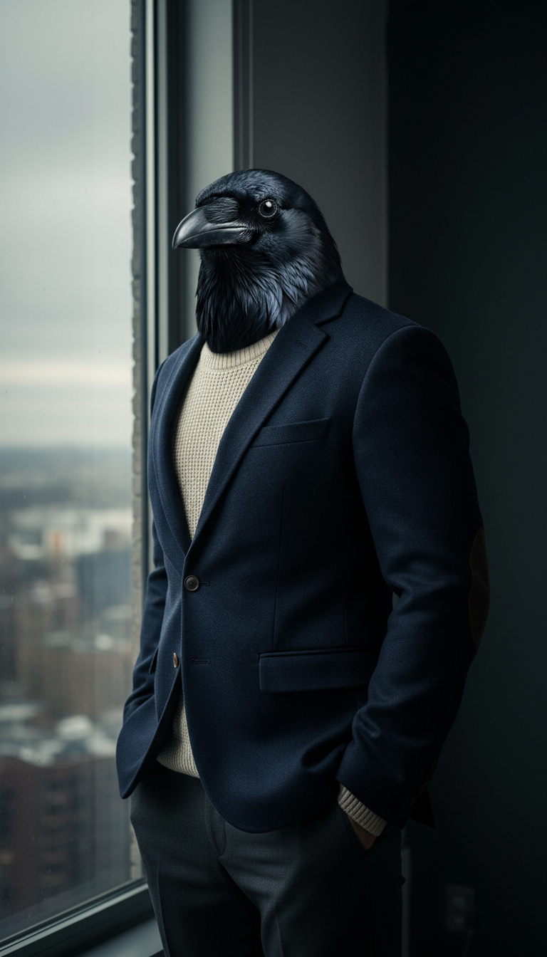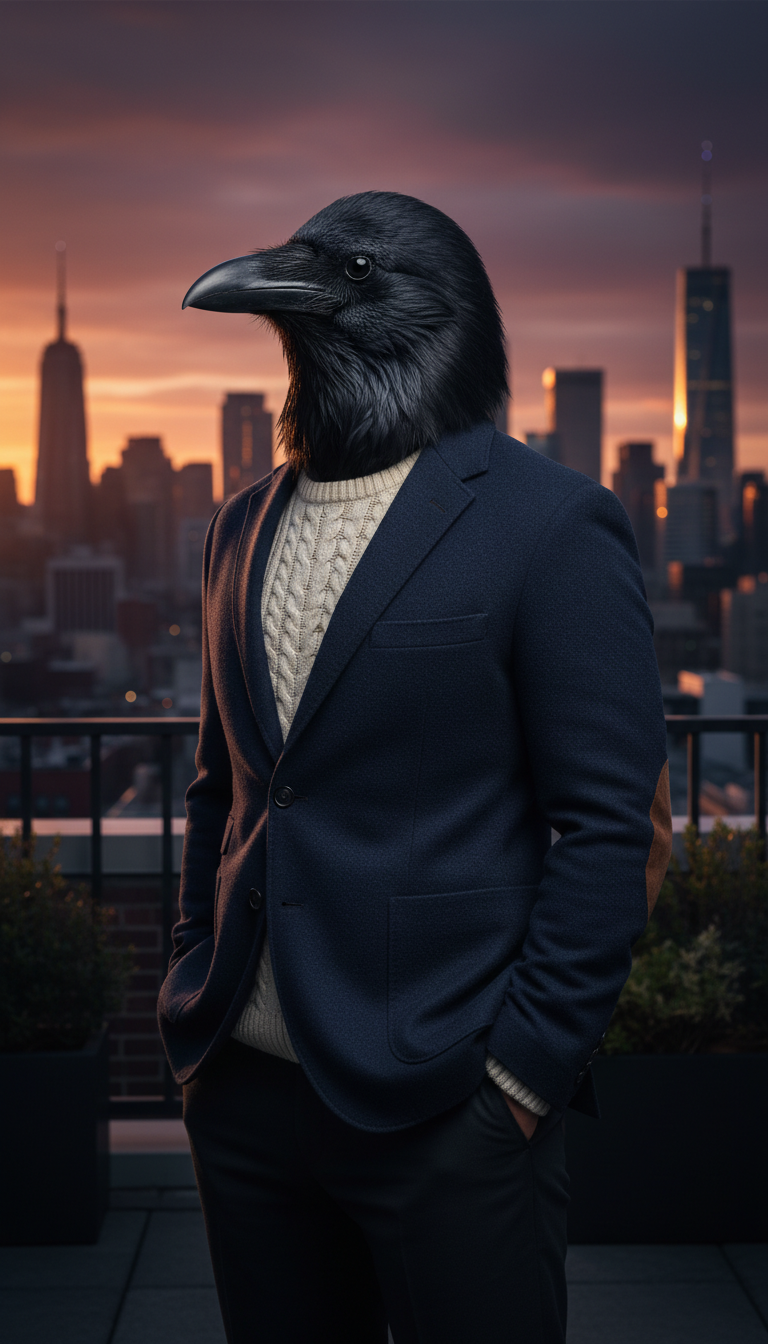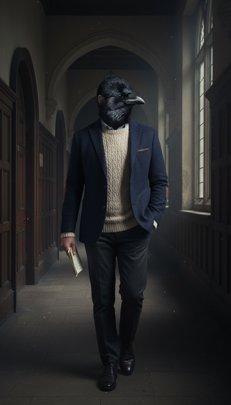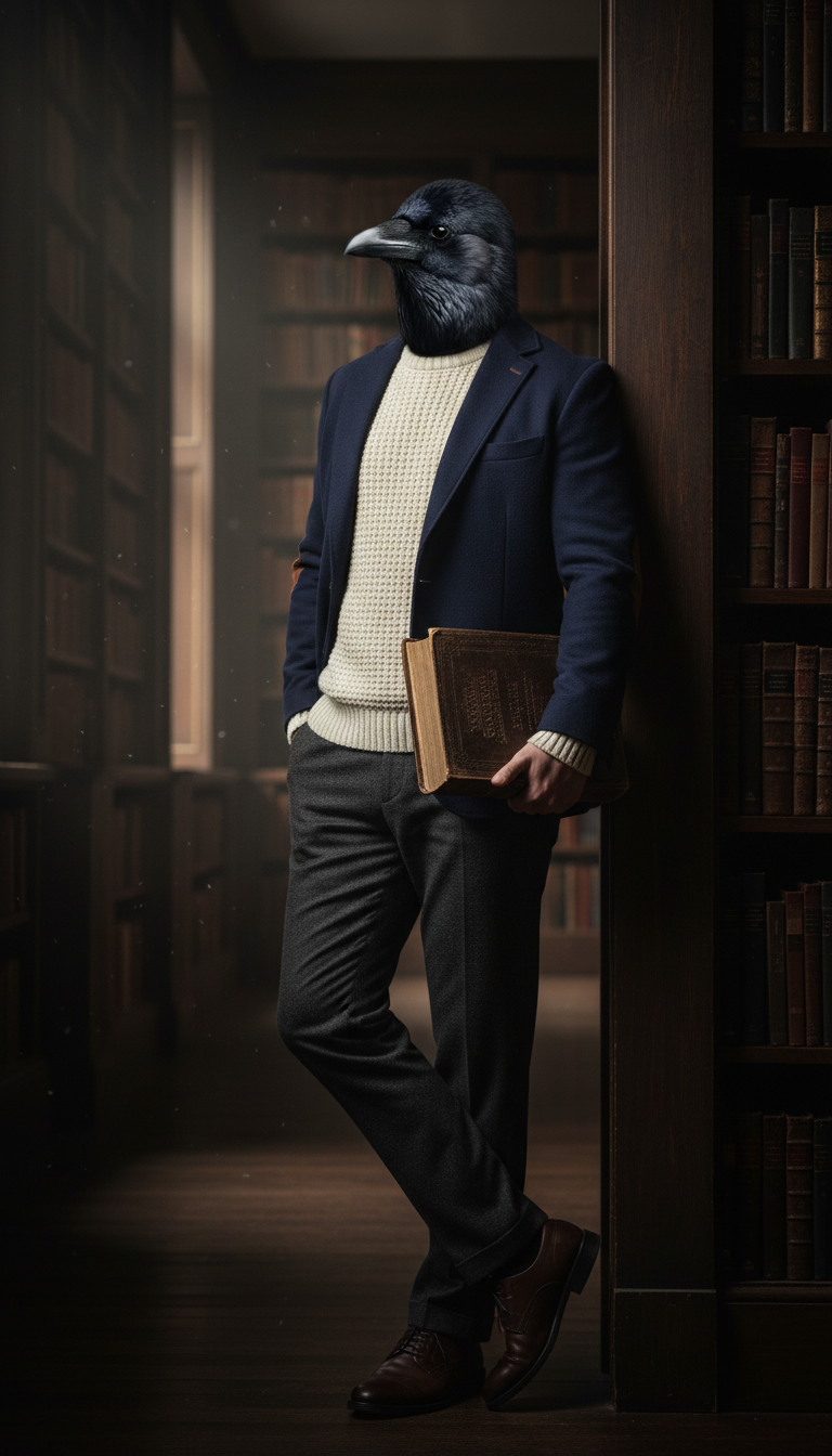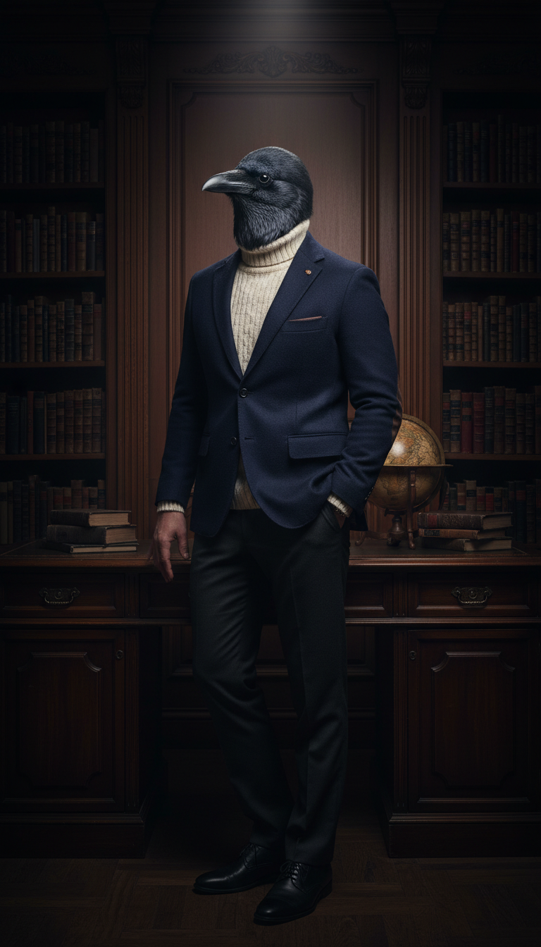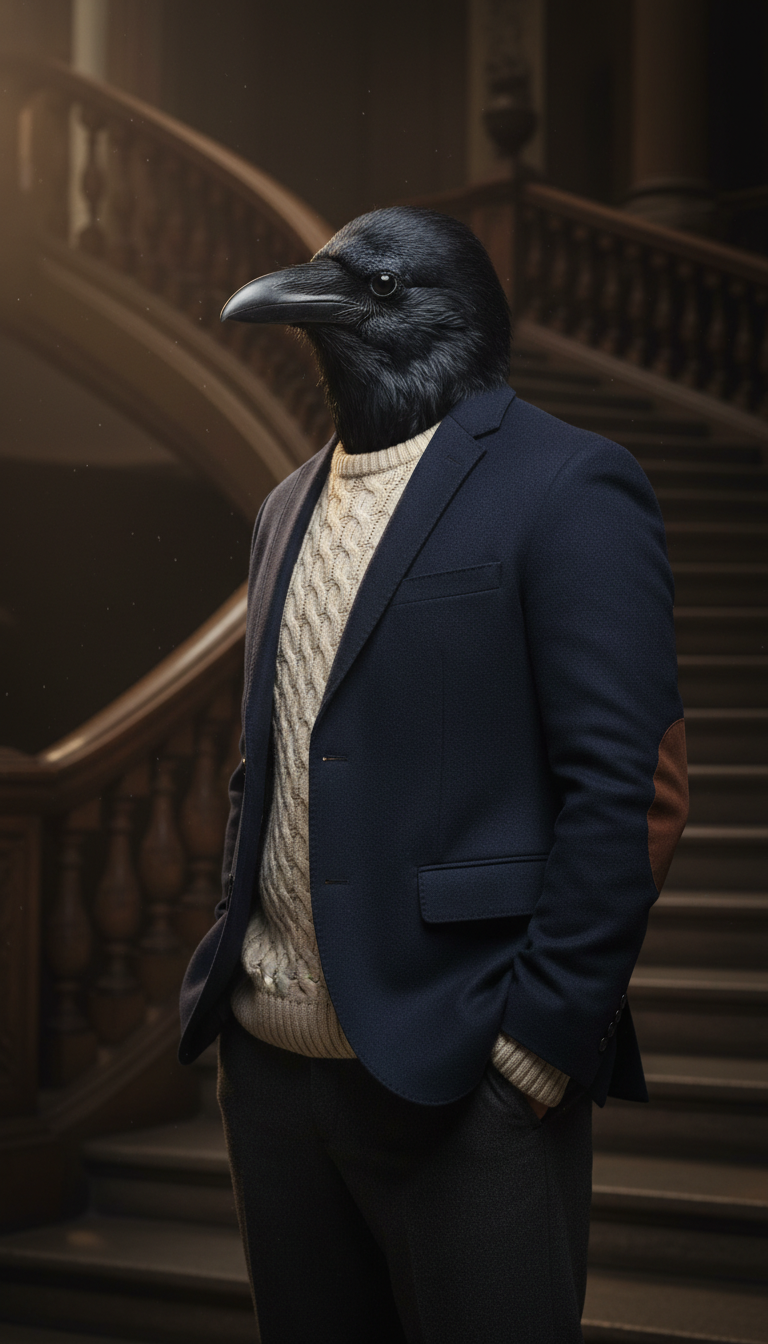 His navy wool blazer with leather elbow patches is not a fashion choice. It is armor. He found it years ago in a used bookshop that also sold old academic jackets, and he has worn it so often that the leather has darkened and the wool has softened into something uniquely his. Underneath, he wears a cream knit sweater regardless of the season. He says he thinks better when he is comfortable, and nobody argues because his output speaks for itself.